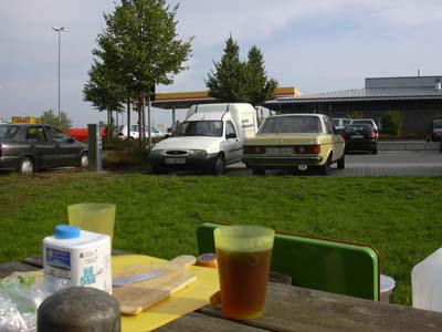 Duschen und frühstücken an/auf dem Autohof "Wikingerland" bei Jagel kurz vor Flensburg.