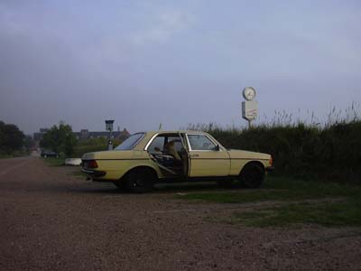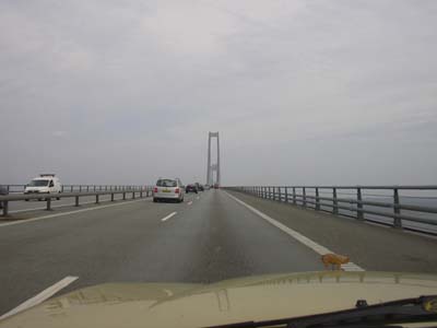 Als ich um ca. 7:30 Uhr aufstand, waren alle Fenster beschlagen. Scheinbar hatte es über nacht geregnet, denn der Sand auf welchem das Auto stand war auch feucht. Auf ein Frühstück im feuchten Sand hatte ich keine Lust, ausserdem wollte ich duschen. Daher entschloss ich so schnell wie möglich weiter zu fahren. Mit einem alten Lumpen (ehemals ein Teil eines alten Betttuchs), welchen ich für diese Fälle dabei hatte, trocknete ich die Scheiben von innen. Darauf startete ich den Motor und setzte die Reise weiter nach Norden fort. Nach der Durchquerung von Eckernförde hielt ich an der Landstrasse an einer grössern Tankstelle an. Ich fragte den jungen Tankwart, ob man hier duschen könnte. Doch leider kam die Antwort "Nein". Auf meine Frage, ob er mir etwas empfehlen könnte kam ein längeres nachdenkliches Schweigen. Doch dann empfahl er mir den Autohof Wikingerland und beschrieb mir freundlicher Weise den Weg. Dort angekommen, erkannte ich an der Vielzahl von Autos und Wohnmobile, deren Scheiben beschlagen waren, dass ich nicht der einzigste bin, der in seinem Auto die Nacht verbringt. Ich ging zur Kasse und bekam auf die Frage nach einer Duschmöglichkeiten die Antwort: "Zwei Euro und die Autoschlüssel als Pfand!". Seltsame Geschäftsbedingung, aber was solls wenigsten kam ich zu meiner Dusche. Schnell packte ich meinen Kram zusammen, zahlte die Gebühren und gab die Schlüssel ab. Dafür bekam ich den Zugang zu einer sehr sauberen Duschkabine mit WC und separatem Waschbecken. Nach dem Duschen holte ich mir meine Schlüssel und machte mir ein Frühstück auf dem angrenzendem Parkplatz. Zum Zähneputzen ging ich nochmals zum Autohof. Anschliessend verlies ich die Gegend auf der Landstrasse, obwohl die Autobahn gleich angrenzte, weil ich solange ich noch im Euroland war meine Lebensmittelvorräte ergänzen wollte, zumal ich keine Dänische Kronen besass und das Wochenende nahte. In Flensburg ergab sich die dazu passende Gelegenheit. Ein Aukaufzentrum mit Aldi. Ich kaufte Brot, O-saft, Milch und Teebeutel. Danach fuhr ich zur nächsten Tankstelle füllte trotz des horenten Preises von 1,18 Euro/Liter den Tank mit Diesel bis zum Kragen. Dafür gab es bei der Tankstelle auch einen Wasserhahnen an dem ich kostenlos meine Wasserkanister auffüllen konnte. Danach wechselte ich beim GPS erneut die Karte und war somit endgültig für Skandinavien vorbereitet. Gegen 11:00 Uhr erreichte ich die Grenze zu Dänemark. Die Beamten liesen mich ohne zu stoppen einreisen. Gleich darauf kam auch eine Autobahnauffahrt welche ich in Richtung Kolding auffuhr. Mein erster Eindruck von den Dänischen Autobahnen war negativ überraschend. Der rechte Streifen, welcher in erster Linie von den LKWs befahren wird, war stark zerdrückt. Ich hatte Mühe mit dem Daimler in den Rillen zurecht zukommen, was an für sich nie ein Problem ist. Daher kam bei mir zuerst die Vermutung auf, dass die Skandinavischen LKWs eine andere Spurbreite haben. Diese Vermutung konnte ich jedoch bis zum Ende der Reise nicht bestätigen. Nach ein paar Minuten hatten ich mich an diese neue Strassenverhältnisse gewöhnt und lies meinen Daimler wie auf Schienen auf der Autobahn schnurren. Dabei hatte ich auch das Gefühl, dass die LKWs hier etwas schneller als in Deutschland sind, sodass für mich mit der 50 PS Maschine des 200d kein Bedürfnis bestand sie zu überholen. Ich parkte die Tachonadel bei 110 km/h und fuhr auf der rechten Spur setig weiter. Nach ca. 160 Tageskilometer erreichte ich über die E20 die Insel Fyn. Die Fahrt ging nonstop weiter via Nyborg nach Kopenhagen, welches inzischen auch schon auf den Richtungsschildern zu lesen war. Gegen 13:40 erreichte ich den ersten Highlight des Tages, die Storebelt Brücke. Kurz vor der Brücke gab die Möglichkeit auf einen Rasthof zu fahren welchen ich nutzte. Vom Rasplatz aus konnte ich mir während einer Kaffepause die Brücke von unten anschauen. Nach dem Kaffee checkte ich die Getriebeaufhängung, da ich das Gefühl hatte, dass etwas bei Leerlaufdrehzahl an den Unterboden hämmert. Ich konnte nichts feststellen und fuhr wieder zurück zur Autobahn. Die Überfahrt über die Storebeltbrücke kostete 200 DKK was etwa 44 SFR entspricht. Den Betrag bezahlte ich mit Euro und bekam dafür Dänische Krone heraus. Anschliessend ging die Fahrt weiter nach Kopenhagen. Mit dem GPS lies ich mich direkt in Zentrum lotsen. In der Nähe vom Hauptbahnhof befuhr ich einen gebührenplichtigen Parkplatz. Am Ticketautomat angelangt, stellte ich fest, dass einerseits die Gebühren sehr hoch sind und ich mit den paar Münzen welche ich als Rückgeld von der Storebeltbrücke bekam ich höchstens ein paar Minuten parken könnte. Also blieb mir keine andere Wahl als einen anderen Parkplatz zu suchen. Diesen fand ich dann auch gleich, in der nähe vom Güterbahnhof neben einem zu Abriss geweihtem Gebäude.