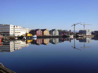 Die Stadt Tromso spiegelt sich im Eismeer.