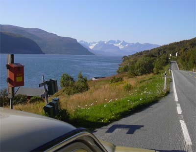 Als ich gegen 5:00 Uhr aufwachte war es bereits hell. Ich schlief dennoch bis 6:25 Uhr weiter. Beim Aufstehen hattes es 9 Grad im Auto. Die Scheiben waren wieder mal beschlagen. Nach dem Putzen der Windschutzscheibe fuhr ich den Benz zu einem Müllcontainer um den dortigen Stromanschluss für den Wasserkocher zu nutzen. Ein einsam rumstehender Einkaufswagen diente als Tisch. Mitten im Mühl stehend hatte ich das Gefühl, als wäre ich nicht in Norwegen sondern mitten in New York in Brocklin, aber denn schmeckte mir das Frühstück. Zeit stand mir an diesem Tag genügend zur Verfügung, denn ich wollte das Polarmuseum besuchen und dieses öffnete erst um 11:00 Uhr. Also frühstückte ich gemüdlich, packte anschliessend meine ganzen Utensieline in den Kofferraum und ging auf einen Stadtbummel durch die einsamen Strassen von Tromso. Den Hafen fand ich wie am Abend zuvor sehr fastzinierend. Am Abend sah ich bereits die Häuserfront im Wasser spiegelnd. Aber am Morgen war es noch besser. Das Wasser war absolut glatt und ein perfekter Spiegel. Den alten Stadtteil hatte ich schnell erkundet. Offensichtlich schien mein Auftreten sehr vertrauenswürdig, denn ich wurde mehrmals von Fremden angesprochen um Wegbeschreibungen zu geben. Als es 11:00 Uhr war öffnete das Polarmuseum. Die Museumswärterin, ein sehr aktrative Person :-), sprach sogar Deutsch. Im Museum wird gezeigt, wie die ersten Siedler (Pelztierjäger und Goldgräber in der Arktis überlebten. Des weiteren gab es jede Menge an Informationen über die Expiditionen zum Nordpol welche in Tromso starteten. Da ich mich selbst auf einer Expidition zum Nordkap befand, fand ich dieses Thema sehr interessant. Hier konnte ich auch ein Modell der Fram -das Boot mit dem Roald Amundsen zum Nordpol durchkommen wollte- sehen. Obwohl meine Reise mit dem Daimler für so machen vielleicht etwas zu spartanisch war, empfand ich sie zum Vergleich mit den Expitionen zum Nordpol als reinste Luxusreise. Nach einem etwa zwei stündigem Museumsbesuch sass ich wieder im Daimler und fuhr die 862 zurück zur E6 um dort in Richtung Alta weiter zu fahren. Bereits am Vortag seh ich am Abzweig mehere Tankstellen, welche den bisher günstigsten Diesel aller bisherigen Tankstellen in Norwegen hatten (SFR/l 2.04). Ich nutze die Gelegenheit den Tank mit Diesel zu füllen und an einem der aufgestellten Tischen und Bänken einen Kaffee mit Schockokeckse zu nehmen. Das Wasser zum Kaffee kochte ich wieder mit meinem Wasserkocher. Steckdosen findet man in Norwegen wirklich genügend! Schade war nur, dass die Tankstelle keine Möglichkeit zum Duschen anbot. Nach der Pause ging die Fahrt weiter nach Alta. Unterwegs kochte ich mir eine Tomatensosse mit Spagetti aus meinen mitgebrachten Vorräten. Ich wollte wenig Zeit verlieren um mein Tagesziel trotz des Museumsbesuches zu erreichen. Nur wenige Kilometer vor Alta traff ich auf die ersten Renntiere am Strassenrand. Ich hielt an, setzte den Warnblinker und versuchte ein Foto zu machen. Obwohl die Tiere die ganze Zeit ruhig darstanden, rannte sie, als ich ausstieg, davon. Scheinbar haben sie vor den Autos keine Angst, aber vor den Menschen? Ich stand noch am Strassenrad als ein Golf II anhielt. Der Fahrer versuchte mit mir ein Gespräch zu beginnen. Anfangs verstand ich nicht was er wollte. Mit der Zeit konnten wir uns doch verständigen. Er war der Besitzer der Renntiere und dachte ich stehe mit dem Warnblinker da, weil ich eines seiner Tiere angefahren habe. Aber es war nichts passiert. Wir verabschiedeten uns winkend und ich fuhr die restlichen Kilometer meiner Tagesstrecke. Mit dem Einbruch der Nacht (gegen 21:00 Uhr) entdecke ich in einem kleinem Vorort von Alta eine Kirche. Auf dem umgebenden Friedhof gab es Leitungswasser und Stromsteckdosen :-) Ich dachte: "Ein perfektes Quartier um am nächsten Tag mein Frühstück zu machen.". Daher beschloss ich zu bleiben.