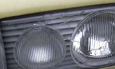 Jetzt weiss ich, was an der Russischen Grenze glirrte. Der Scheinwerf vom Daimler ist bei einem Steinschlag zerbrochen :-(