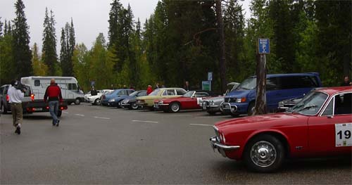 Mein W123 beim Oldtimertreffen in Tankavaara. Jedoch hatte die anderen kein so grosses Vertrauen in ihre Schätze. Wie man in der Vergrösserung sehen kann (links vom Bild) haben sie gleich einen Abschlepp-Anhänger mitgebracht.