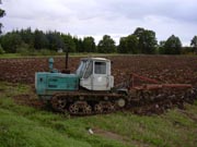 Ein osteuropäischer Raupenschlepper bei der Arbeit.