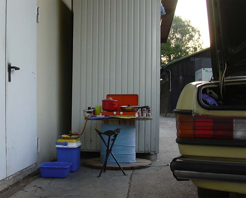Die Nacht war für mich um 7:00 Uhr zu Ende. Ich groch aus meinem Schlafsack, zog meine Klamotten an und setzte Kurs zur ehenmaligen Landtechnik Weihenstephan. Dort angekommen Freude es mich sehr, dass meine Erwartungen, frisches Leitungswasser und Strom aus der Steckdose, erfüllt wurden. Ausserdem fand ich einen "Tisch" welcher das Frühstücken angenehmer machte. Ein paar Jogger kamen vorbei und betrachteten meinen Frühstückstisch sehr misstrauisch. Leider waren sie aber sehr schnell wieder weg, sonst hätte ich ihnen einen Kaffee angeboten. Ausserdem freude ich mich sehr, als ich bemerkte dass trotz dem Zeitalter der Fussionsvieren noch das alte Firmenschild an der Hauswand hängt. Nach dem Frühstück ging die Reise weiter nach Passau. Obwohl ich damals viel näher an dieser Stadt wohnte als heute nutzte ich nie die Gelegenheit sie zu besichtigen. Dieses wurde an diesem Tag nachgeholt. In Passau angekommen stellte ich fest, dass meine Anwesendheit das durchschnittliche Alter der Besucher wohl eher nach unten korrigierte. Berechnete man das durschnittliche Alter der Autos, so erzeugte meine Anwesenheit gerade das Umgekehrte. Die Stadt war voll mit Renter(Touristen) und Autos. Auf den engen, aber durchaus sehenswerten Gassen war ein Verkehrskaosk. Ich floh, indem ich meinen Benz in eine Tiefgarage stellte und die Stadt zu Fuss erkundete. Nach ca. vier Stunden Spaziergang kreuz und quer durch die Innenstadt hatte ich genug gesehen und beschloss den Rückzug. Im Gegensatz zur Anreise verzichtete ich diesesmal auf die Autobahn. Die Landstrassen führten zuerst zu einem Lidl, wo ich gleich den Proviant für das Abendessen kaufte, dann am Inn entlang. Zwischendurch überquerte ich kurz die Grenze nach Österreich und fand eine Sitzgruppe direkt am Fluss um mir einen Kaffee zu kochen. Anschliessend ging die Fahrt über eine Hügelkette zum Isartal, welches ich bis nach Freising hinauffuhr. Gegen 19:00 Uhr erreichte ich Freising. Ich fuhr zum MiniMal um eine 0,5 l Eispackung und zwei Freisinger Jägerbräu zu erwerben. Das Eis wurde sofort zur Abkühlung verdrückte. Das Bier wanderte in die Kühlbox. Ich fuhr weiter zur ehemaligen Landtechnik um meinen "Frühstückstisch" für das Abendessen zu nutzen. Es gab mal wieder Fleisch mit Knödel aus dem Kochbeutel. Nach dem Abendessen und Abwasch erfolgte ein kleiner Verdauungsspaziergang zum Domberg. Mit dem Einbruch der Nacht wurde der Daimler in die Ecke des Hofes geparkt und das Nachquartier bezogen. Vor dem Schlafengehen gab es noch ein Freisinger Jägerbräu als Schlummertrunk.