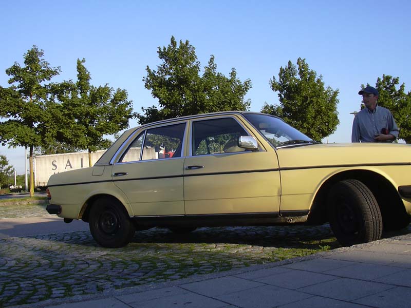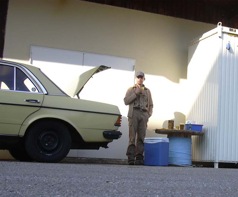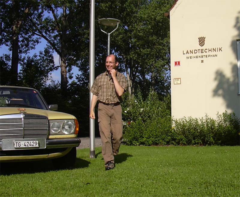 An für sich war der Freitag (30.06.2006) ein ganz normaler Arbeitstag. Am kommenden Sonntag war bei meinem ehemaligen Arbeitsgeber bzw. deren neuen Einheit in welcher er fussioniert wurde, Tag der offenen Tür. Ein gute Gelegenheit mal wieder alte Bekannte zu treffen. Da mein w123 reisebereit in der Garage stand, lag nichts näher als die Gelegenheit zu nutzen mal wieder nach Weihenstephan zu fahren. Die Fahrt mit einer weiteren Reise zu kombinieren gab zusätzlichen Ansporn. So entstand kurzerhand diese Reise, welche in diesem Reisebericht festgehalten ist. Im Büro war um 17:00 Uhr schluss. Ich ging nach Hause um die Waschmaschine, welche mir nur am Wochenende zur Verfügung steht, zu füllen und den 200D zu packen. Um 20:00 Uhr hing die zweite Waschmaschinenladung sauber auf der Leine und der Benz war fertig gepackt. Die Reise begann. Der Weg führte via Bregenz (Österreich), Lindau nach Weihenstephan. In Bregenz nutze ich die Gelegenheit günstigeren Diesel zu tanken und meinen 20 l Kanister zu füllen. In Deutschland angekommen ging es via A96 weiter in Richtung München. Der Mercedes dieselte mit seiner 50 PS Maschine gewohnt ruhig dahin. Die Nacht war warm und es war angenehm beim offenen Schiebedach zu fahren. Ausser entspannt anzukommen war für diesen Tag nichts mehr geplant. Aufgrund des Freibierfestes in Freising, welches diesen Abend stattfand,beschloss ich mein Nachtquatier ausserhalb von Freising zu suchen. Ich fuhr nach Allershausen, wo ich für ein paar Monate wohnte und ich mich auskenne. Wie erwartet fand ich gegen Mitternacht in der Nähe der Kirche ein ruhiges Latternenplätzchen um meinen W123 abzustellten. Mit dem Zähneputzen, zu welchem ich den Strassengulli als Spuknapf missbrauchte, ging der Tag zu ende.