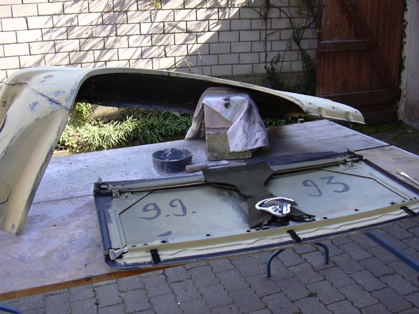 ![]() Neue Dichtungen für das Differential kosten nur ein paar Euro, aber zum Austausch muss man es komplett zerlegen, sodass ich schon zwei Nachmittage mit dem Abdichten beschäftigt war. ![]() Der Kotflügel aus dem Jahr 1993 hatte leichten Flugrost, darunter waren jedoch grössere Rostlöcher, sodass Regenwasser in den Fahrraum floss :-(. ![]() Es ist immer ein Abenteuer. Erst mal alles zerlegen und dann den "Schaden" analysieren. ![]() Den passenden "Flicken" machte ich mir selbst aus einem Blech, welches ich beim Spengler holte. ![]() Das Dach war das letzte Bauteil, welches noch die Orginalfarbe hatte. Es wurde abgeschliffen, neu grundiert..... ![]() .... und anschliessend wieder mit Ahorngelb (606) lackiert ![]() Am 9.9.1993 behandelte ich zum ersten mal ein paar Roststellen am Schiebedach, diesesmal wurde es neu lackiert. ![]() Da ich schon mal dabei war, habe ich auch gleich den Kotflügel gegen Flugrost behandelt und neu lackiert. Inzwischen ist der "Neue" mit 14 Jahre schon genauso alt wie das Orginal welcher wegen Rost ausgetauscht wurde. ![]() Die Einpritzpumpe tropfte auch etwas, daher spendierte ich eine neue Dichtung. Leider>habe ich dabei den Einspritzzeitpunkt verstellt :-( (Einspritzzeitpunkt einstellen) ![]() Das Getriebe tropfte auch :-(. Um es abzudichten (Simmerring Eingangswelle und Simmerring Ausgangswelle) war ein Komplettausbau nötig. Dabei wurde auch gleich die Kupplung gewechselt. |